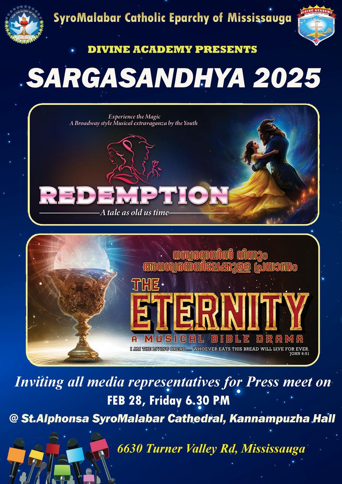 The Eparchy of Mississauga – Syro Malabar Catholic Church Canada invites you to be part of Sargasandhya 2025, a monumental fundraising event marking the 10th anniversary of our vibrant community in Canada. This grand celebration promises an enchanting evening filled with faith, artistry, and togetherness!